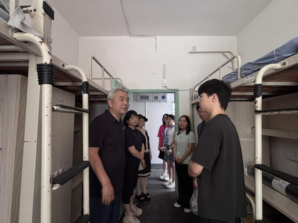 我院党委书记杜继军、副院长何燕华、研究生办工作室主任王丹、辅导员老师罗昊、教师代表姚迪、刘翱一行人慰问了迎新现场的工作人员,对我院细致化、暖心化的迎新服务给予肯定。随后,一行人前往新生宿舍,实地查看住宿环境,与新生、家长亲切交流,关切询问新生生活需求,认真听取家长对后勤保障的意见。他们还提出要尽快适应研究生学习节奏,既要潜精研思做学问,也要平衡学习与休息,院领导与学院老师的殷切叮嘱,让新生和家长倍感安心。