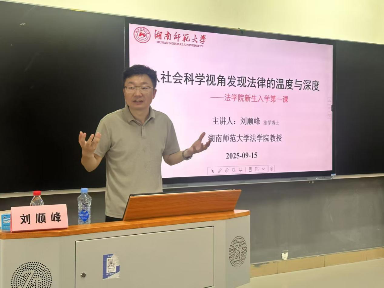 (通讯员 李奕瓯 崔芳鸣)为培养2025级本科新生的法学思维,引导新生洞察法律与社会生活的深刻关联,9月15日上午,我院2025级本科新生“开学第一课”在我校桃花坪校区115报告厅举行,我院教授刘顺峰担任主讲人。