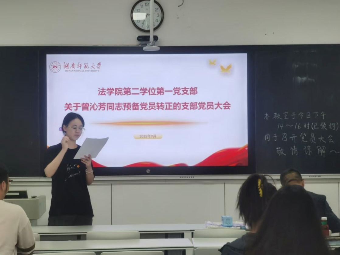 (通讯员 邹渊海)2025年9月22日下午,我院本科生二学位第一党支部在法学院105教室召开党员转正大会暨换届选举大会。二学位班班主任吴智、支部第一书记廖星出席会议。会议由支部学生副书记毕铭桧主持。