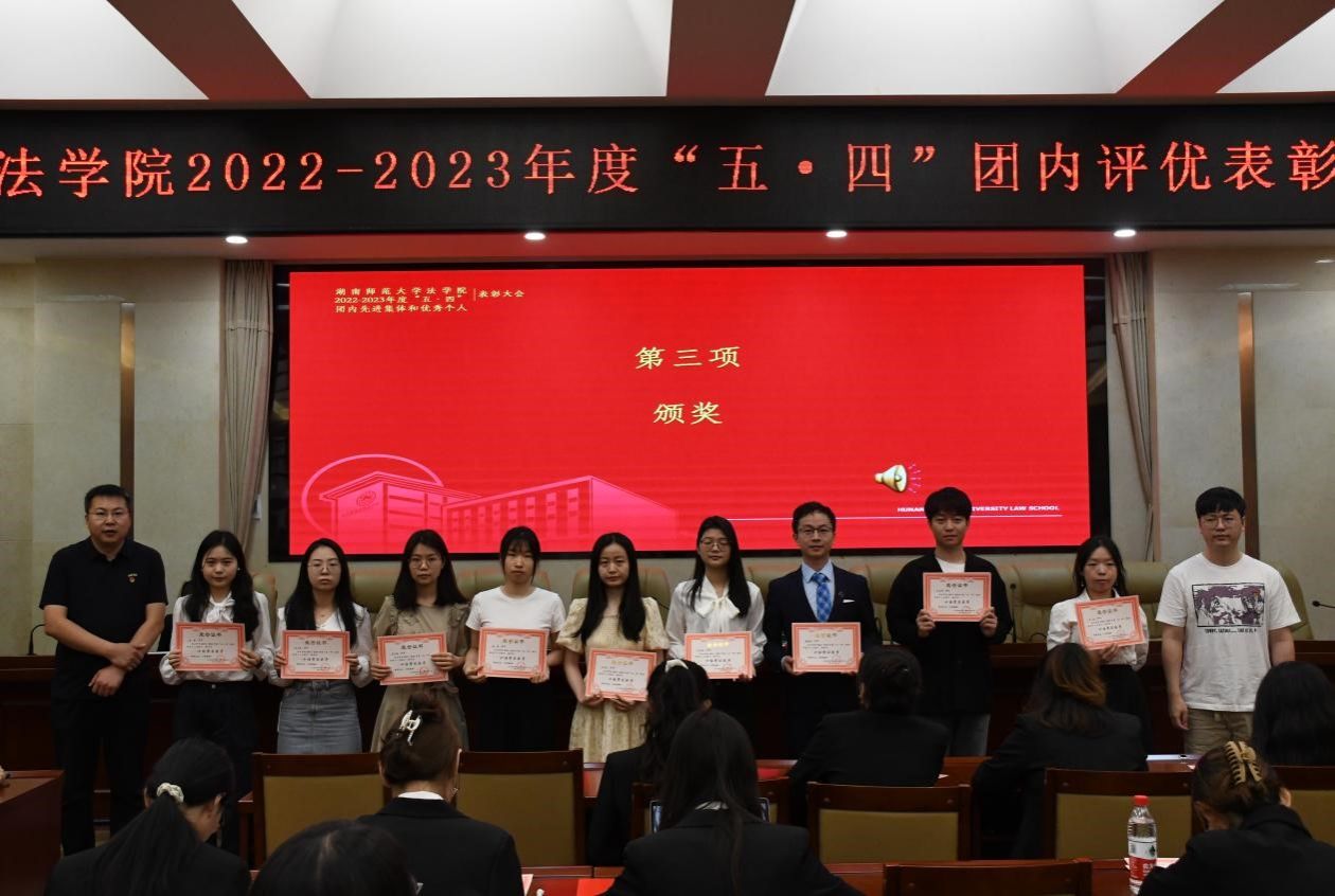 (通讯员 梁延喆 马书晨 刘思汝)6月3日上午,我院2022—2023年度“五•四”团内表彰大会在院205会议室举行。院党委副书记曹俊峰,团委负责人、2022级辅导员廖星,2021级辅导员许华燕,法硕办老师罗昊出席此次大会。大会由团委办公室吴桐主持。