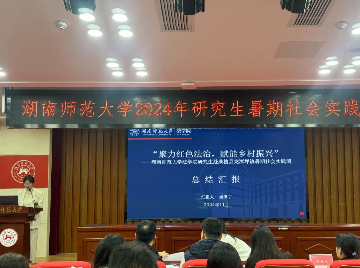 (通讯员 刘伊宁)11月25日下午,湖南师范大学2024年研究生暑期社会实践总结汇报会在中和楼129报告厅召开,我院研究生实践团队在15个团队中脱颖而出,连续两年荣获优秀团队一等奖,院党委书记唐建文、研究生辅导员罗昊获优秀指导老师,刘伊宁、朱烨获优秀个人。