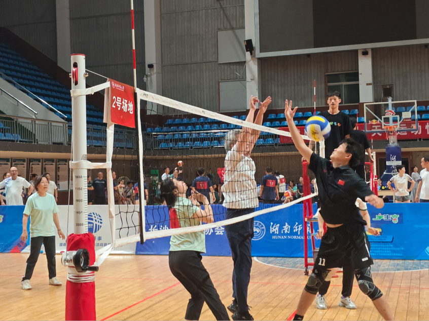 (通讯员 吴粲玥 秦芷然)2025年6月9日至10日,2025年湖南师范大学教职工气排球比赛在南院行健体育馆举行。我院气排球代表队由16名教职工组成,其中院党委书记杜继军担任领队,吴智教授担任教练,蒋新苗、黄谷秀、周利民、银红武、刘琳、刘力、姚迪、肖姗姗、刘杨、王丹、朱思齐、罗昊、廖星、张宁莎作为队员积极应战。
