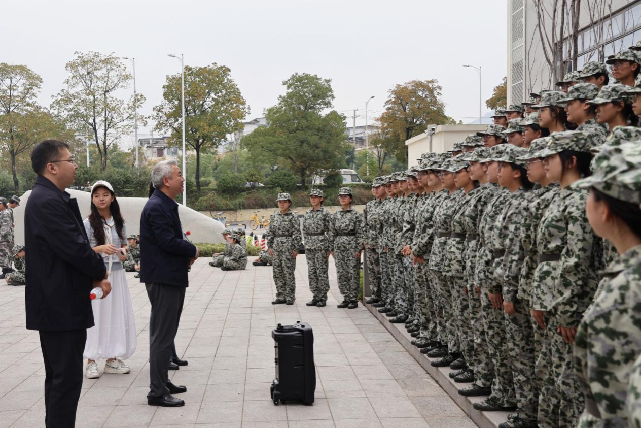 (通讯员 曾佳慧 王奥妮)10月15日下午,我院党委书记杜继军、党委副书记曹俊峰,以及学工办全体辅导员赴桃花坪校区,看望并慰问2025级本科新生及带训教官,现场指导新生军训工作。