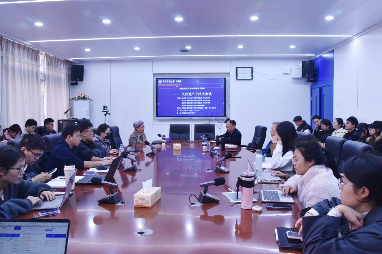 (通讯员 王宇舟 解靖)11月26日,湖南师范大学法学院举办“文化遗产立法大家谈”专题座谈会。中国人民大学法学院教授、联合国教科文组织“文化遗产法教席”主持人王云霞,副院长周刚志教授,全国人大代表肖北庚教授,夏新华教授及贾旭东教授等专家学者,与法学院学子齐聚一堂,围绕文化遗产立法展开深入研讨。