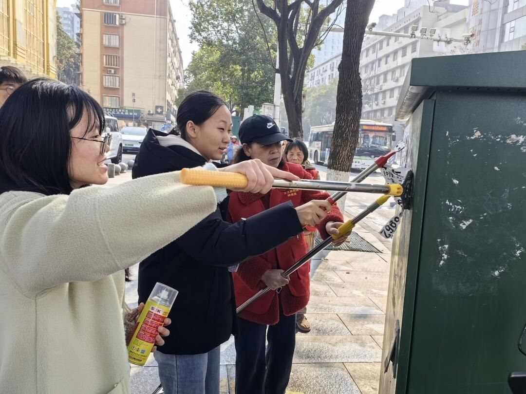 理论学习与温情服务之余,美化家园的行动也同步展开。慰问结束后,支部成员手持小铲子、喷水壶等工具,对社区周边墙面、电线杆上的各类非法小广告进行清理。通过大家的共同努力,社区内的“城市牛皮癣”得到有效清除,公共设施恢复了原本整洁的面貌。支部成员以点滴小事践行雷锋精神,营造整洁有序、文明、和谐的社区氛围。