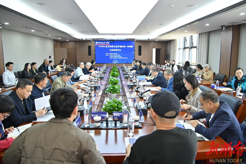 湖南法治报·新湖南客户端讯(全媒体记者 齐果 通讯员邓玮 实习生郑稚睿 视频奉天成)4月25日,“《中华人民共和国生态环境法典》的理解与适用”研讨会在湖南师范大学顺利召开。来自全国人大常委会法工委、司法机关、生态环境行政主管部门以及省内外高等院校、科研机构的四十余位专家学者齐聚一堂,围绕生态环境法典的立法创新、适用机制与实施路径展开深度研讨,为推动法典精准落地、高效实施贡献学术智慧与实践方案。
