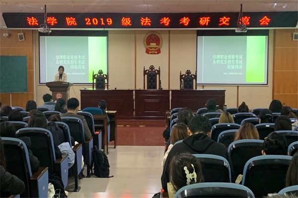 (通讯员 张斯 孟宪智)12月9日中午,我院在模拟法庭召开2019级法考、考研交流会,会议由2019级辅导员罗紫薇主持。