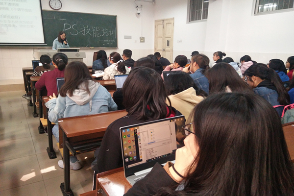 烽火团校负责人在培训会前期已将PS安装包等相关材料发送给学员们。学员们携带笔记本电脑准时来到培训会现场。张可欣直接在教室多媒体上使用PS软件,结合具体图片进行实地教学。她通过现场制作海报,向学员们演示了PS的基本使用方法。学员们跟随主讲人的示范进行同步操作。在过程中,他们现场提出遇到的问题,张可欣随即演示解答。此种培训方法使学员们在短时间内提升了PS软件使用水平。