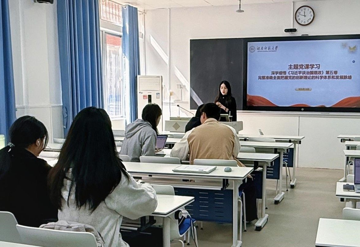党课结束后,全体党员赴湖南大学红楼开展“‘湘’遇红楼,青春‘党’行——湖师大青年党员的红色寻访”主题党日活动。红楼作为湖南大学红色文化地标,承载着近代以来湖湘大地的革命记忆与精神密码。励铭荃结合史料,梳理红楼历史沿革,重点讲述了近代知识分子传播进步思想、革命先辈勇毅前行的峥嵘往事。党员们驻足沉思并合影,切身体会到红楼爱国奉献、坚毅担当的精神内核。