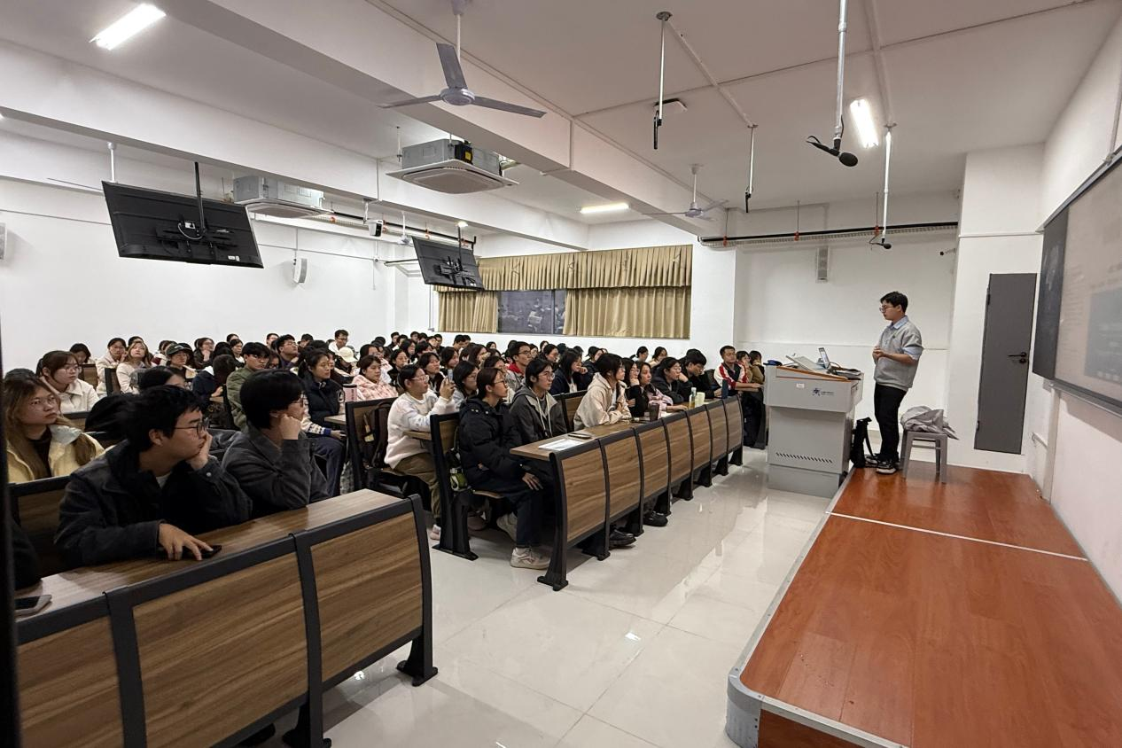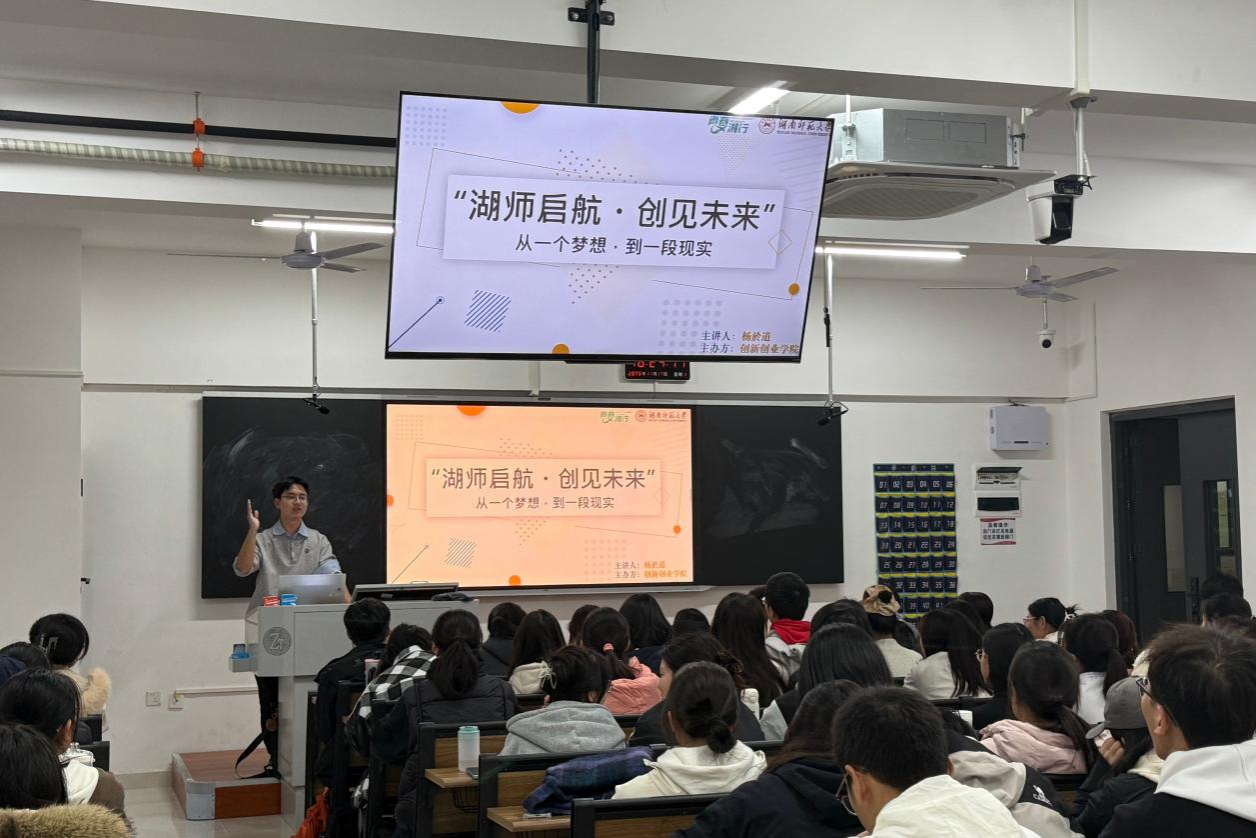 (通讯员 周慕哲 蒋柠宇)11月18日下午,我院在实训楼开展湖南师范大学创新创业新生第一课讲座,2025级辅导员许华燕出席活动,旅游学院2022级本科生杨於道担任主讲人。